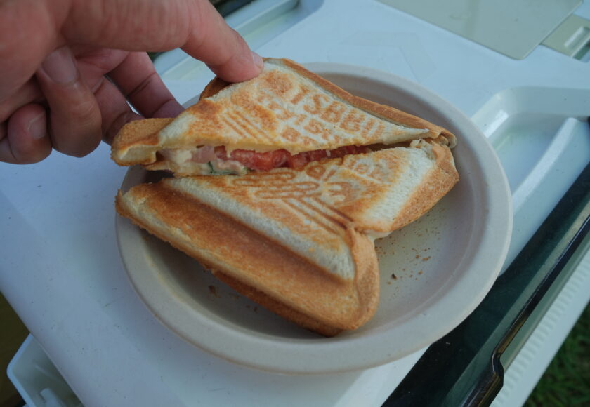 朝ご飯はバジルとチーズをふんだんに入れたホットサンド。